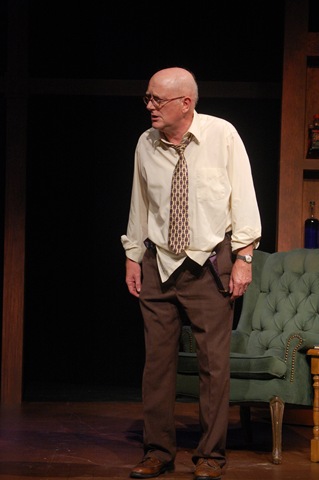 Steve Brady, wonderful in Shadowland’s “The Dangers of Electric Lighting” and “The Ladies’ Man” among others, is absolutely brilliant in his portrayal of Dr. Bob. He is a warm, caring country doctor who just happens to be a raging, falling-down drunk – in his home, in his practice and yes, even in his surgery. He is scary and pitiful, but also lovable and charming, evoking true emotion and tears as the audience struggles with his every alcoholic episode.