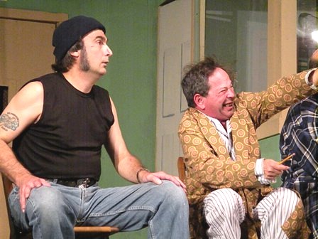 Ed Berens as Cheswick, nervously twitching and pointing at imaginary things throughout the play; Mike Washburn as Martini, quiet but delusional; Matt Bonnell and Matt Boswell as the cowed and compliant Aides Warren and Williams respectively; Rosalie Siciliano as an equally quiet do-as-she’s-told Nurse Flynn; Lawrence Myers as the pipe-smoking, deep-thinking Dr. Spivey who will ultimately do as he’s told; Amber Schmidt and Lauren Cemelli as McMurphy’s lady friends, Candy and Sandy, who only want to show the residents a good time; Oliver King as Turkle, a wizened night watchman who provides the means for a good time; and Aaron Tremper as Ruckley, the lobotomized reminder of Ratched’s unyielding and never-ending power.