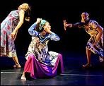 Three females from Haiti caught on a raft in a stormy sea, telling us a story via exquisite and profound movements. Garbed in Caribbean dress (photo left and below), they conveyed feelings of fear from the life they left behind and hope for the life ahead of them: “Radeau (Raft)”.