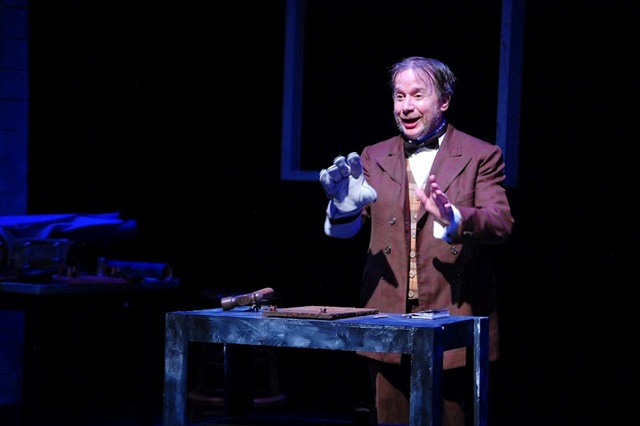 Artistic Director, Brendan Burke. Drew Francis’ set is first rate, complete with glowing electrical pieces, Edison’s messy desk and a small screen above the stage used to illustrate the time period and even an Edison movie. Perfect period costumes are designed by Holly Lewis Budd, and Jack Wade’s lighting capably portrays the dark mood of the play.