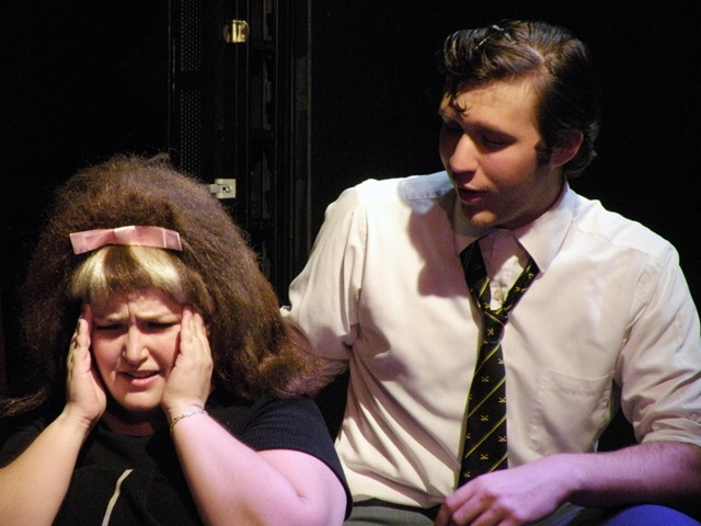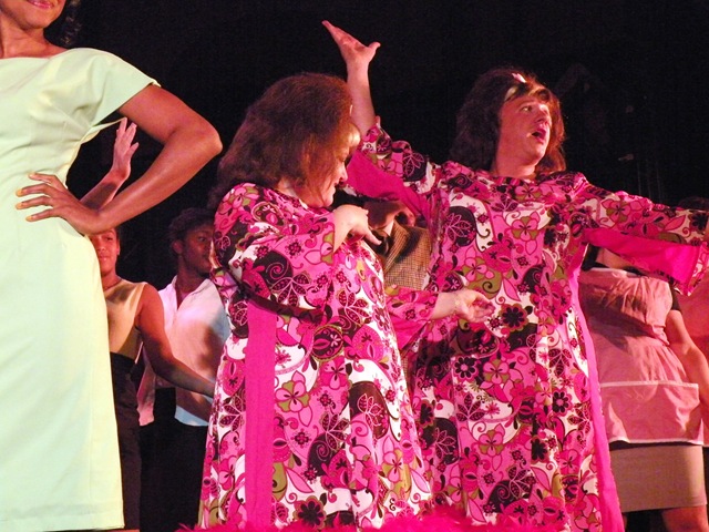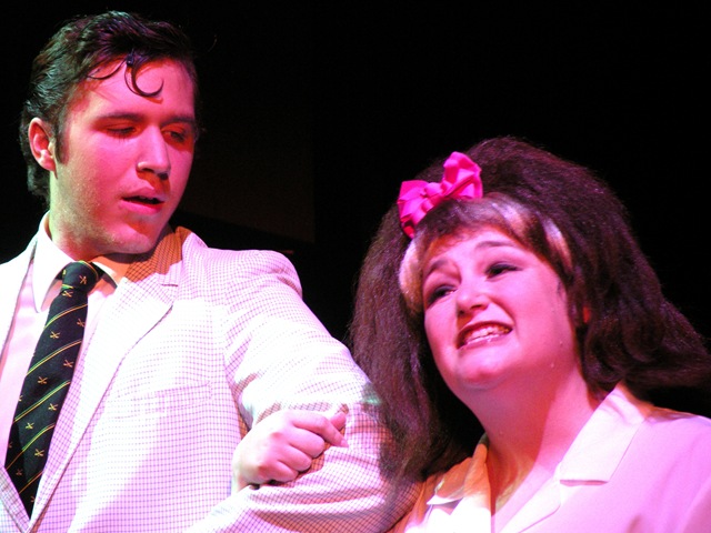Her mother, Edna, performed as is tradition by a male (in this case the awesome Joseph Gervais), fearful that her plus-sized daughter will be the object of ridicule, refuses Tracy’s request to audition for the show. And in a great musical number Tracy, along with her best friend Penny (played with drab precision by Heather Stevens, photo below along with the always-perfect Carol Scannell-MacAdam