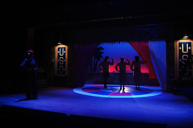 The setting is a south Pacific island during WWII, where the three Andrews brothers named Max (Gordon Maniskas), Lawrence (Josh Kenney) and Patrick (Michael Alan Jacobs) are getting ready for a USO show starring The Andrews Sisters. (Did you notice that the characters share a similarity in names with the famous sisters?)