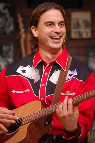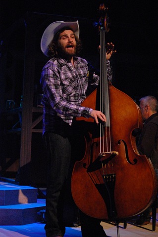 and Ben Williams (photo left) as Nat, the unconventional, eccentric band member, carry this show to a level best described as inspired and wholly imaginative. One of the most entertaining scenes, of which there are several, is the band’s relationship with an evangelistic representative of a good ol’ down-home-type Tennessee church. Here, Ben assumes the role of an overly enthusiastic minister, and by means of a series of actions reminiscent of slap-stick hyperbole proclaims that all praise the Lord and prepare for the Day: The Day when “when that heavenly phone rings”; they’ll be called upon; called upon to “Answer the Call.” Priceless theatre!