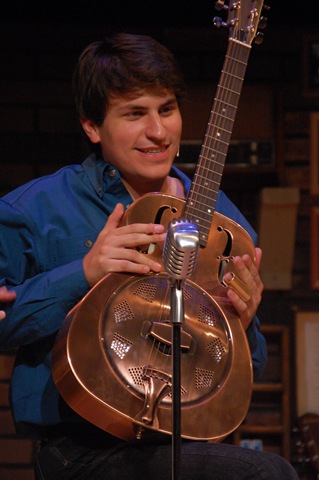 The actors/band members in this production play their own instruments as each is also an accomplished vocalist. David Demato (photo left) gives plausible life to the broken hearted but lovable Darrell Walker, while Nick Landmesser (photo bottom left) presents the character of Curtis Patterson with an enthusiasm that might realistically be attributed to the youngest member of the band. Rounding out the three all-important, supporting members of the