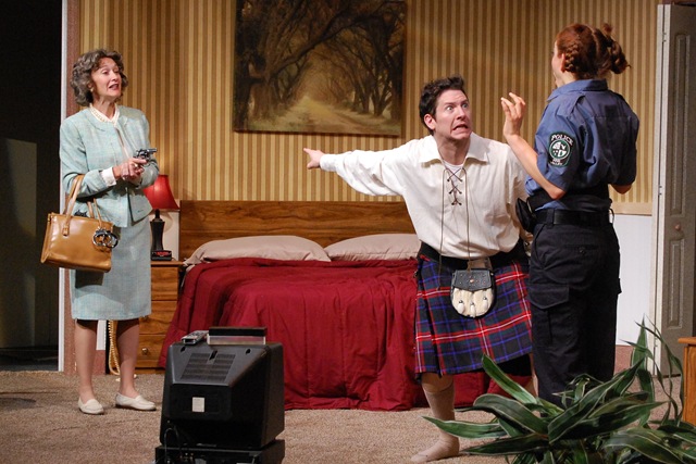 Finally, if one were to believe the play could not become more silly and absurd, there is, as mentioned, the Scottish Mafia. And, if by some remote chance, one is not familiar with the Scottish Mafia, its hit men carry bagpipes and play familiar Scottish melodies immediately preceding the elimination of a victim. This play’s hit man is John-Patrick Driscoll, a talented actor who fortunately has the physical prowess and finesse required to perform a number of demanding scenes with skill.